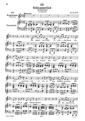 Schlaflied (Schlummerlied) es mahnt der wald, D.527 - Sheet Music for Low Voice and Piano Franz Schubert