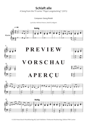 Schlaft alle - A Song from the TV series Pippi Longstocking (1971) - Sheet Music for Piano Solo Georg Riedel