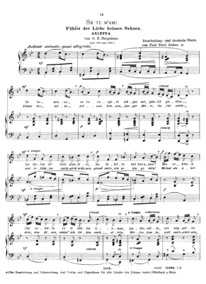 Se tu m'ami - Sheet Music for High Voice and Piano Giovanni Pergolesi