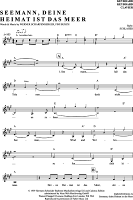 Seemann, Deine Heimat Ist Das Meer - Sheet Music for Keyboard Freddy Quinn