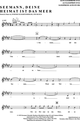 Seemann, Deine Heimat Ist Das Meer - Sheet Music for Alto Saxophone Freddy Quinn