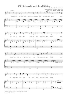 Sehnsucht nach dem Frühling - Sheet Music for Piano and Voice Wolfgang Amadeus Mozart