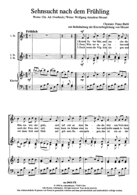 Sehnsucht nach dem Frühling - Sheet Music for female choir + piano W. A. Mozart