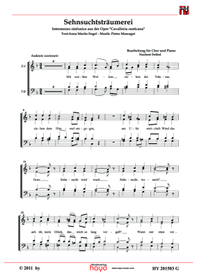 Sehnsuchtsträumerei - Sheet Music for mixed choir and organ/piano Pietro Mascagni