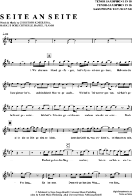 Seite An Seite - Sheet Music for Tenor Saxophone Christina Stürmer