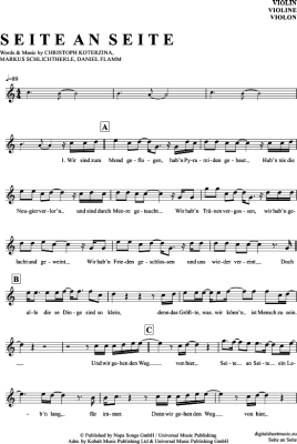 Seite An Seite - Sheet Music for violin Christina Stürmer