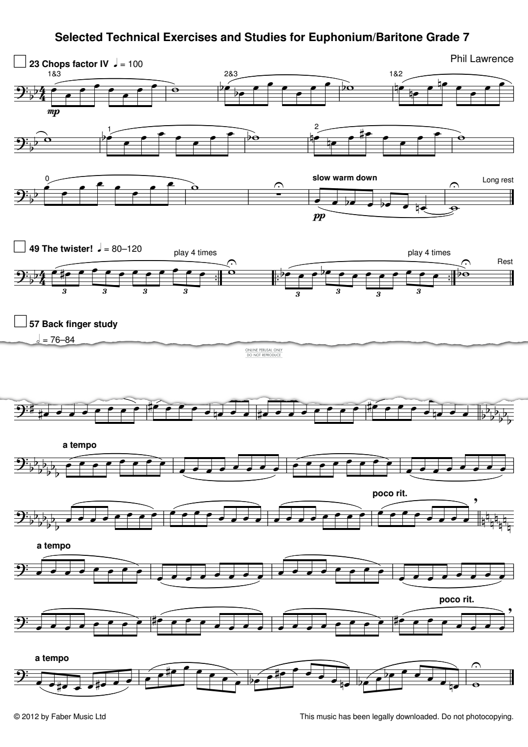 Selected Technical Exercises and Studies for Euphonium/Baritone Grade 7 - Sheet Music for Phil Lawrence