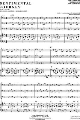 Sentimental Journey - Sheet Music for Trombone Trio + Piano Julie London