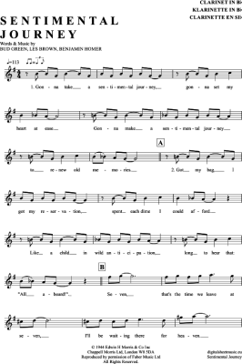 Sentimental Journey - Sheet Music for Clarinet in B-flat Julie London