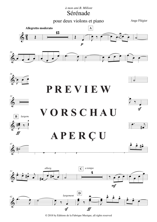 Ange Flégier was a French composer and painter who was born on February 25, 1846 at Marseillesand died on Octobre 8, 1927 in Martigues. Flégier is principally known as havng composed the famoussong for bass and orchestra "Le Cor", but he also wrote more than 300 works for piano, (including aconcerto), many songs, an opéra-comique "Fatima", the oratorio "Ossian" and many chamber works,including the first "dixtuor" for wind quintet and string quintet.