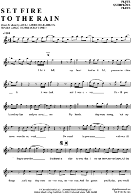 Set fire to the rain - Sheet Music for transverse flute Adele
