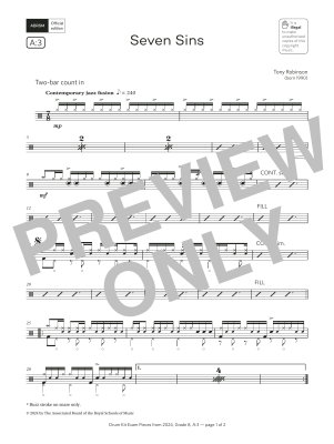 Seven Sins (Grade 8, list A3, from the ABRSM Drum Kit Syllabus 2024) - Sheet Music for Tony Robinson