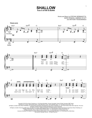 Shallow (from A Star Is Born) - Sheet Music for Lady Gaga & Bradley Cooper