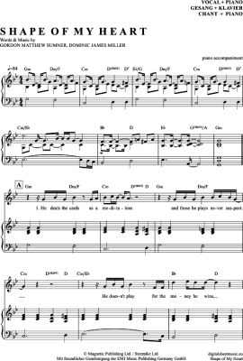 Shape Of My Heart - Sheet Music for Voice with Piano Accompaniment Sting