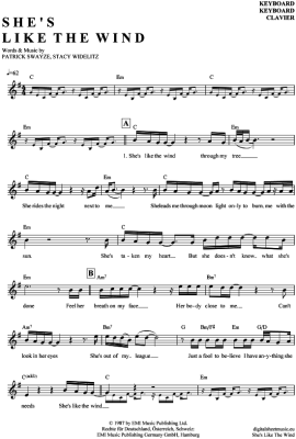 She´s like the wind - Sheet Music for Keyboard Patrick Swayze (aus: Dirty Dancing)