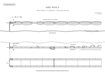 She-Wolf for Violin, Clarinet in Bb, Cello and Piano by Noah Max.