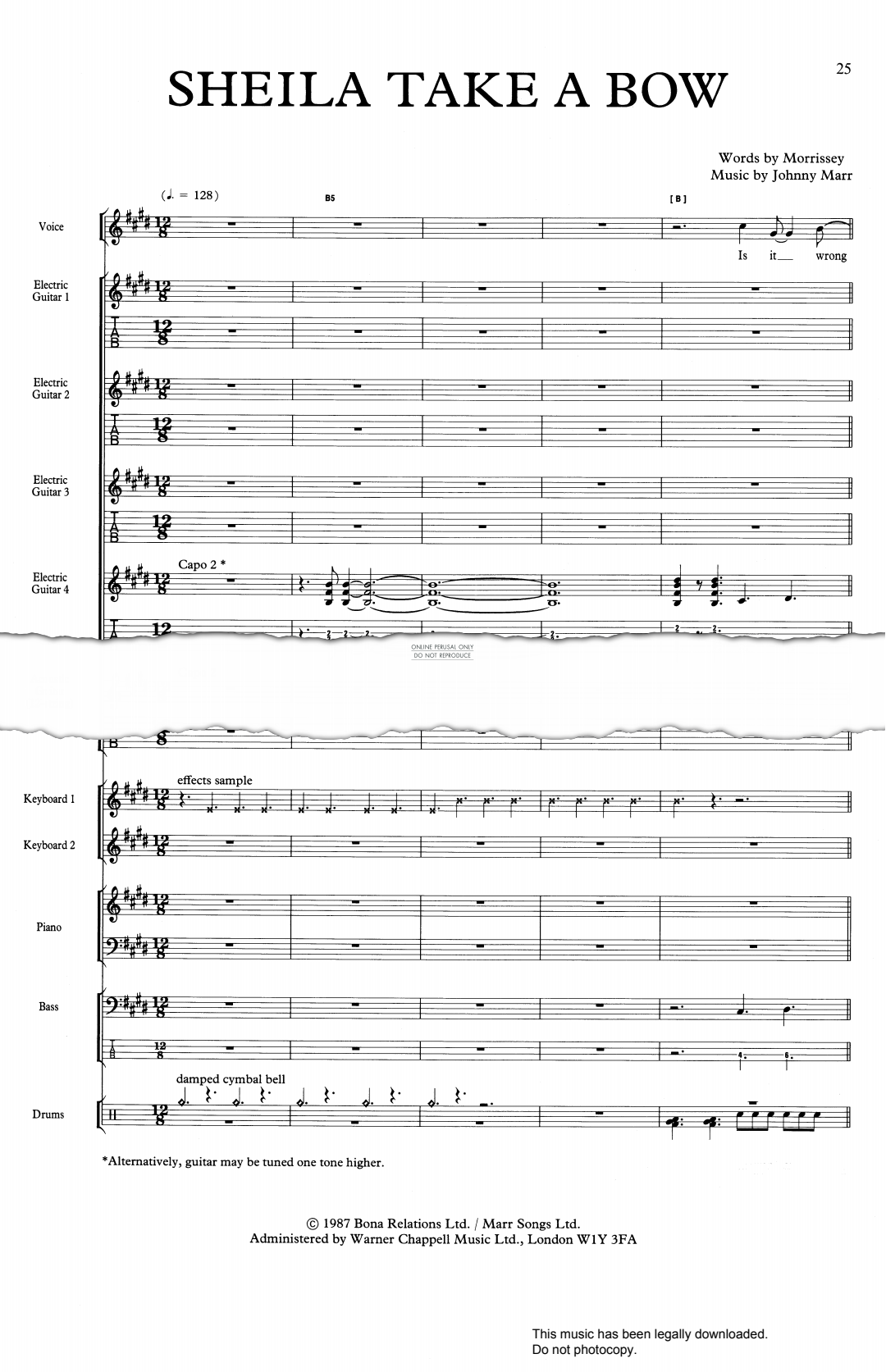 Sheila Take A Bow as performed by The Smiths arranged as an Off The Record score.