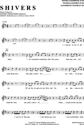 Shivers - Sheet Music for Tenor Saxophone Ed Sheeran