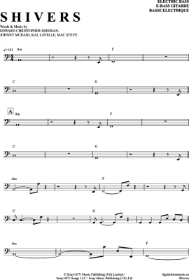 Shivers - Sheet Music for Bass Guitar Ed Sheeran