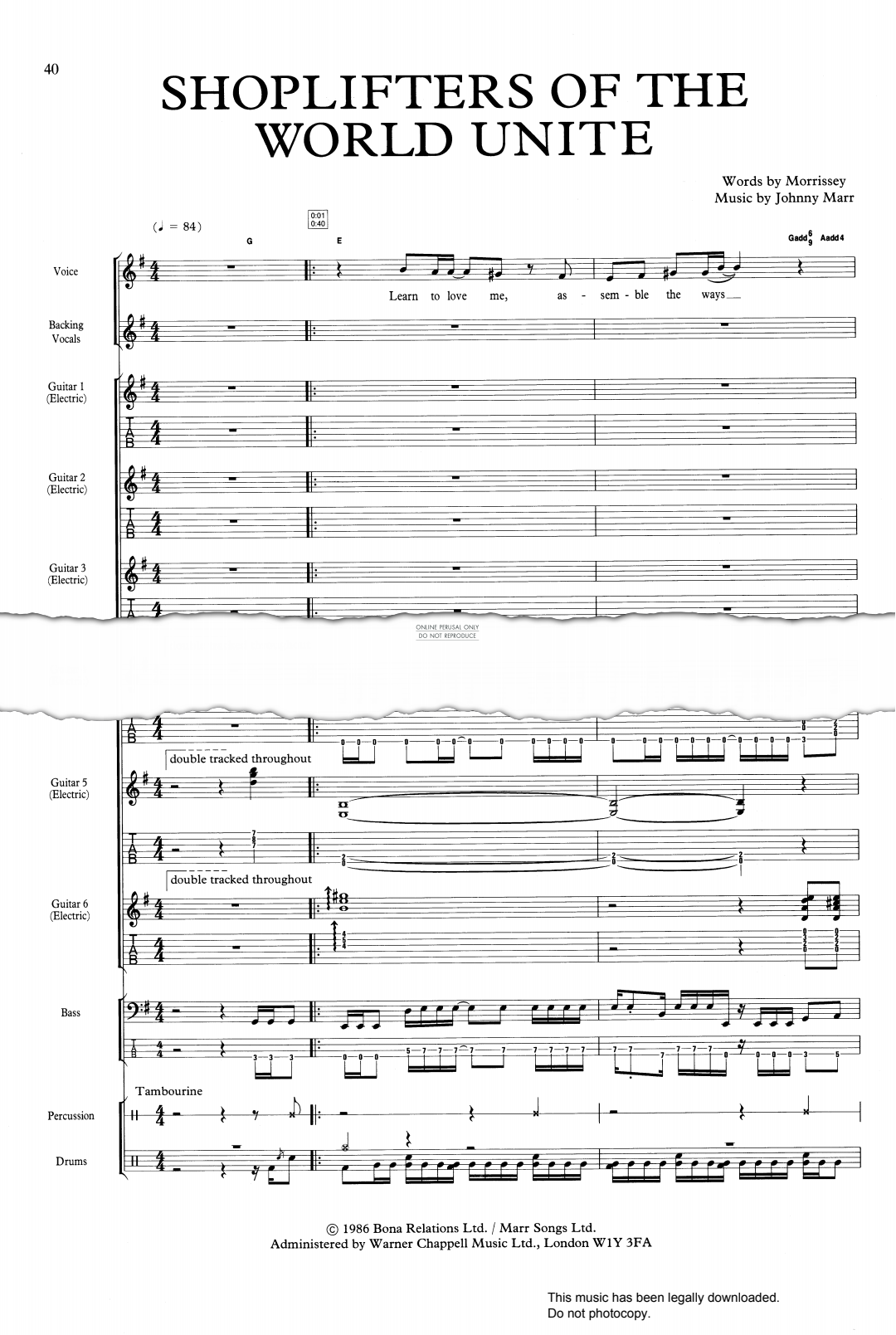 Shoplifters Of The World Unite as performed by The Smiths arranged as an Off The Record score.