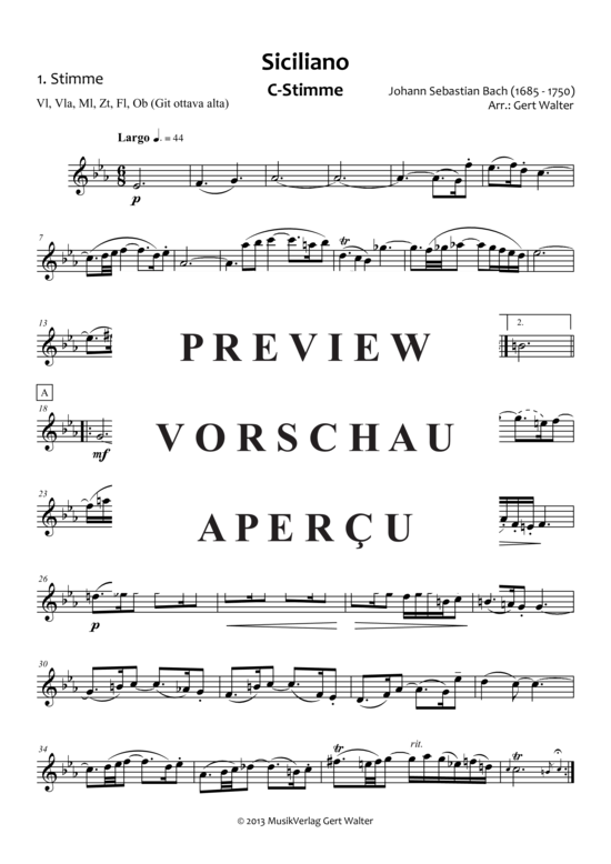 2.Stimme in C, z.B. Vl, Vc, Ml, Zt, Fl, Ob, Gitarre, Mandola