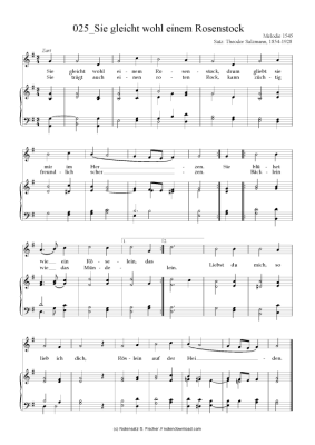 Sie gleicht wohl einem Rosenstock - Sheet Music for Piano and Voice Melodie 1545