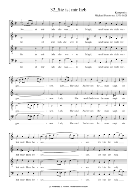 Sie ist mir lieb - Sheet Music for mixed choir Michael Praetorius, 1571-1621