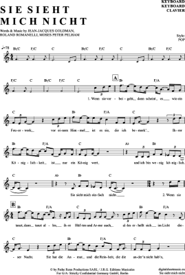 Sie Sieht Mich Nicht - Sheet Music for Keyboard Xavier Naidoo