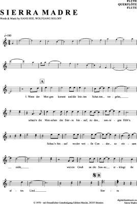 Sierra Madre - Sheet Music for transverse flute Zillertaler Schürzenjäger