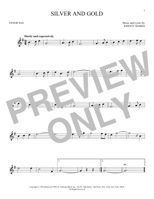 Silver And Gold - Sheet Music for Johnny Marks