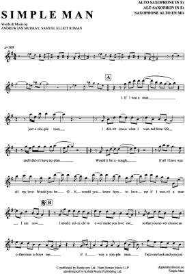 Simple Man - Sheet Music for Alto Saxophone Andreas Kümmert
