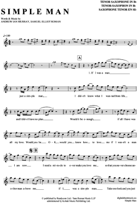 Simple Man - Sheet Music for Tenor Saxophone Andreas Kümmert