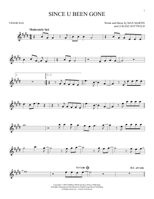 Since U Been Gone - Sheet Music for Kelly Clarkson