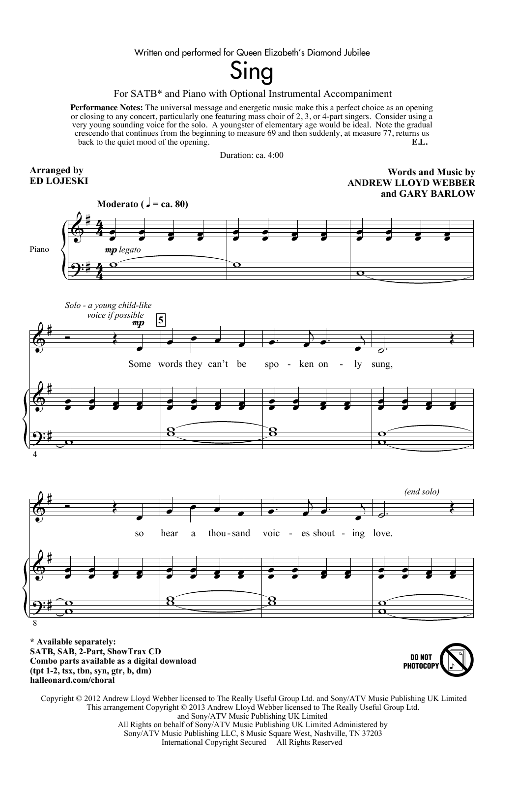 Description "Sing (arr. Ed Lojeski)"
