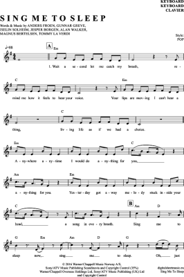 Sing Me To Sleep - Sheet Music for Keyboard Alan Walker