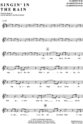 Singin in the rain - Sheet Music for Clarinet in B-flat Gene Kelly (Filmmusik)
