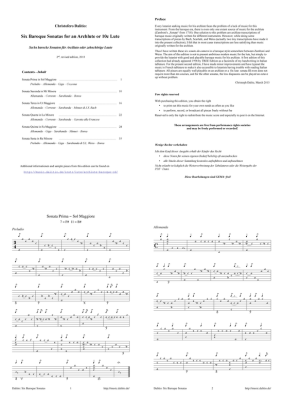Six Baroque Sonatas for an Archlute or 10c Lute - Sheet Music for Lute tablature Christoph Dalitz (1998)