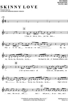 Skinny Love - Sheet Music for recorder Birdy