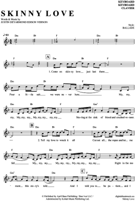 Skinny Love - Sheet Music for Keyboard Birdy
