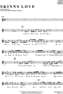 Skinny Love - Sheet Music for violin Birdy