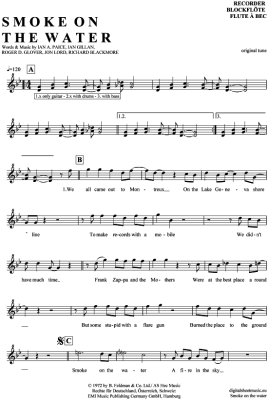 Smoke on the water - Sheet Music for recorder Deep Purple