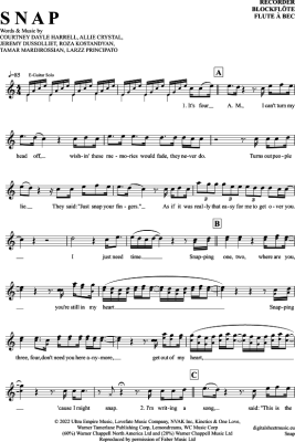 Snap - Sheet Music for recorder Rosa Linn