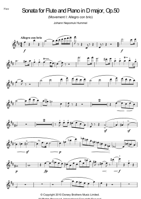 Sonata For Flute And Piano In D Major, Op.50 - Sheet Music for Johann Nepomuk Hummel