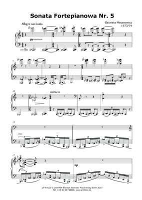 Sonata Fortepianowa Nr. 5 (1973/74) - Sheet Music for Piano Solo Gabriela Moyseowicz