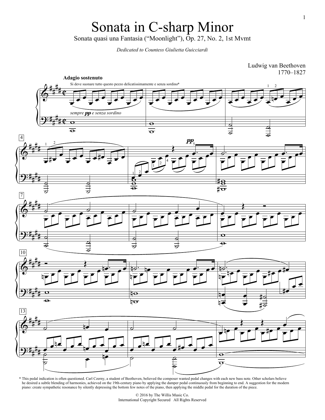 Sonata In C-Sharp Minor, Sonata quasi una Fantasia (Moonlight), Op. 27, No. 2, 1st Mvmt (Educational Piano)
