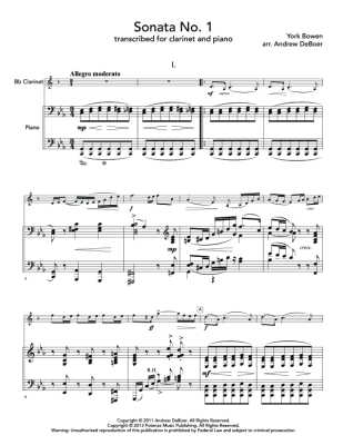 Sonata No. 1 - Sheet Music for clarinet in Bb and piano York Bowen