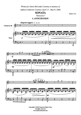 Sonata - Sheet Music for clarinet + piano Barbara York