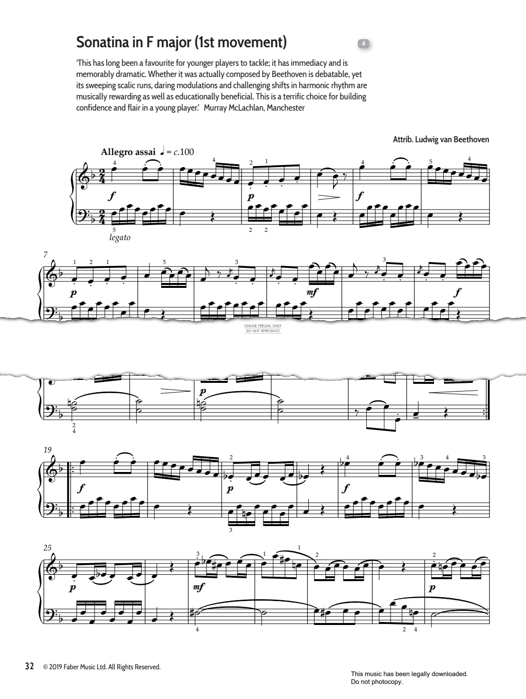Sonatina in F Major (First Movement), composed by Ludwig van Beethoven. Taken from 'The EPTA UK Teachers' Choice Piano Collection Book 1', edited by Mark Tanner, arranged for piano solo in digital sheet music format.