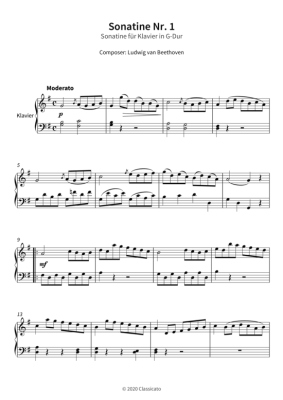 Sonatine Nr. 1 - Sonatine für Klavier in G-Dur - Sheet Music for Piano Solo Ludwig van Beethoven