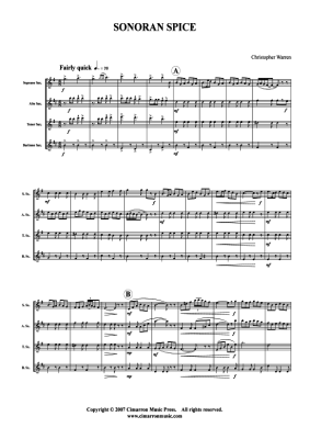Sonoran Spice - Sheet Music for Saxophone quartet SATB Christopher Warren